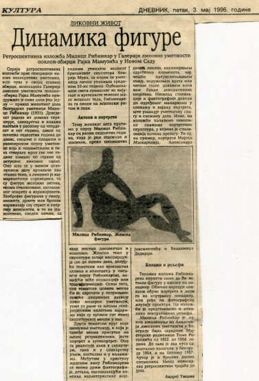 Андреј Тишма, „Динамика фигуре”, Дневник, 3. мај 1996. (izvor: Galerija likovne umetnosti poklon zbirka Rajka Mamuzića, Novi Sad)
