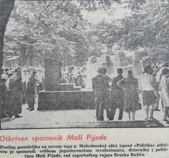Svečano je otkriven Spomenik Moši Pijade, delo vajara Branka Ružića, 7. jula 1969. godine u Makedonskoj ulici u Beogradu.