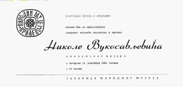 Nikola Vukosavljević: skulpture i crteži, Galerija Narodnog muzeja Kraljevo, 15. decembar 1983 – 8. januar 1984. (izvor: Narodni muzej Kraljevo)