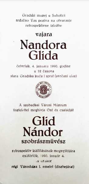 Pozivnica, Nandor Glid, Gradski muzej Subotica, 4. janaur 1990. (izvor: Gradski muzej Subotica)