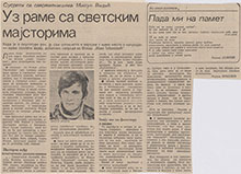 Мирјана Живковић, „Уз раме са светским мајсторима”, Политика, Београд, 30. јул 1988. (izvor: Srpska akademija nauka i umetnosti, Beograd)