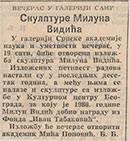 М. Вл., „Видићеве скулптуре”, Вечерње новости, Београд, 25. мај 1988. (izvor: Srpska akademija nauka i umetnosti, Beograd)